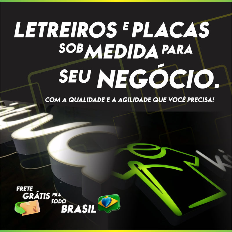 Letra caixa iluminada pela frente, com excelente leitura noturna. Alta visibilidade e destaque para fachadas comerciais.